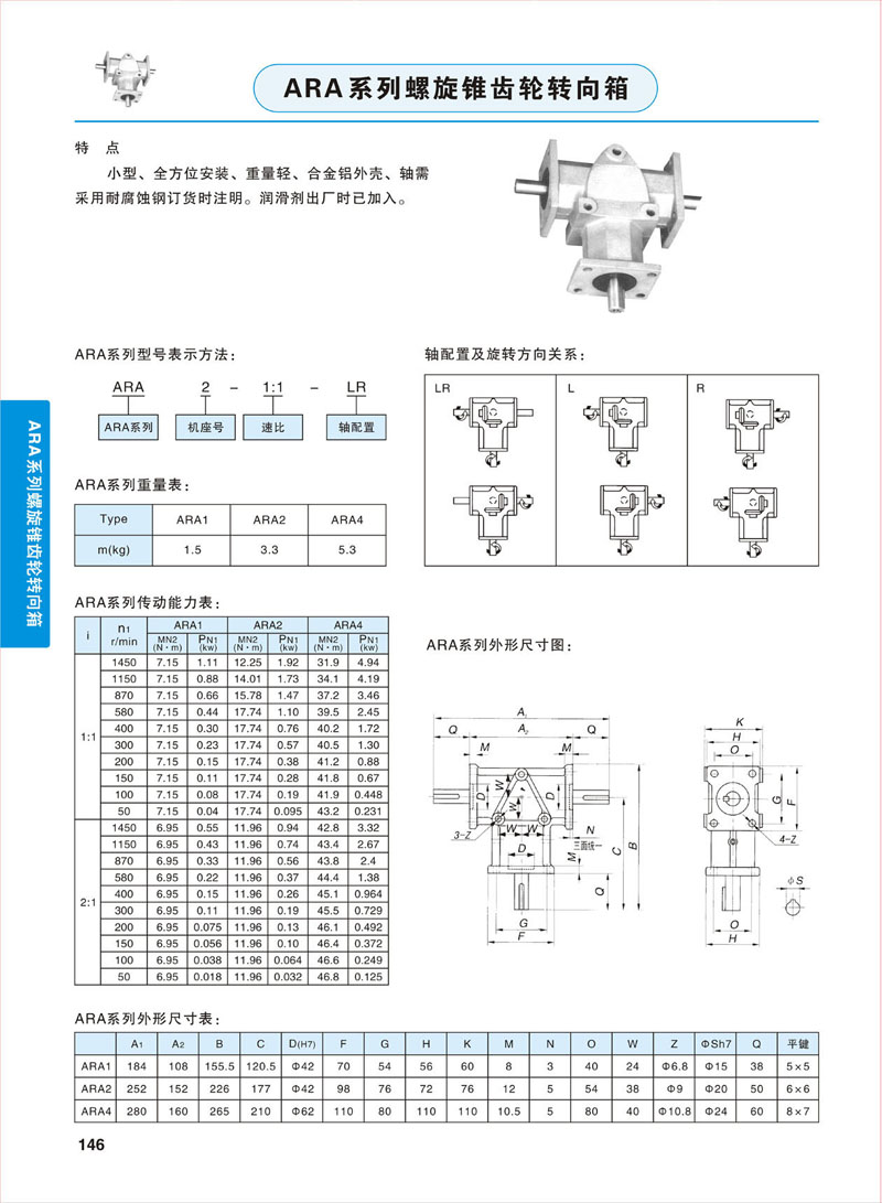 ARA系列轉(zhuǎn)向箱型號有: ARA0、ARA1、ARA2、ARA4;