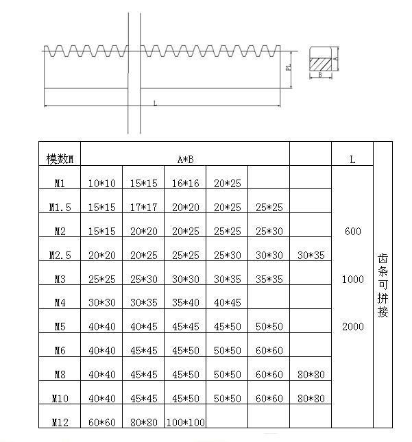 齒條也分直齒齒條和斜齒齒條,分別與直齒圓柱齒輪和斜齒圓柱齒輪配對(duì)使用; 齒條的齒廓為直線而非漸開線(對(duì)齒面而言則為平面),相當(dāng)于分度圓半徑為無窮大圓柱齒輪。