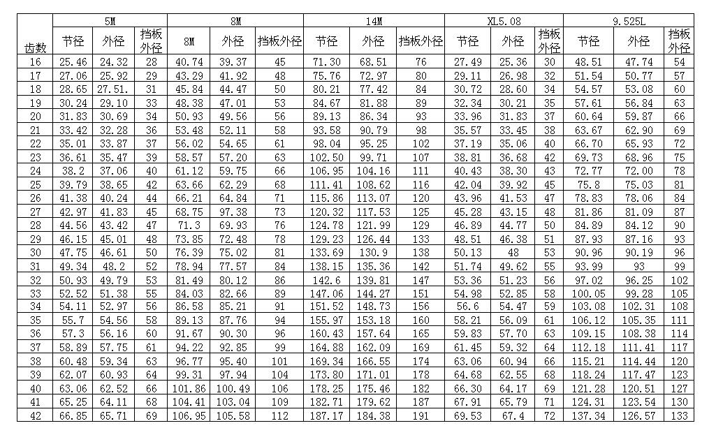 同步帶輪示意圖及尺寸對照表 諾廣廠家提供